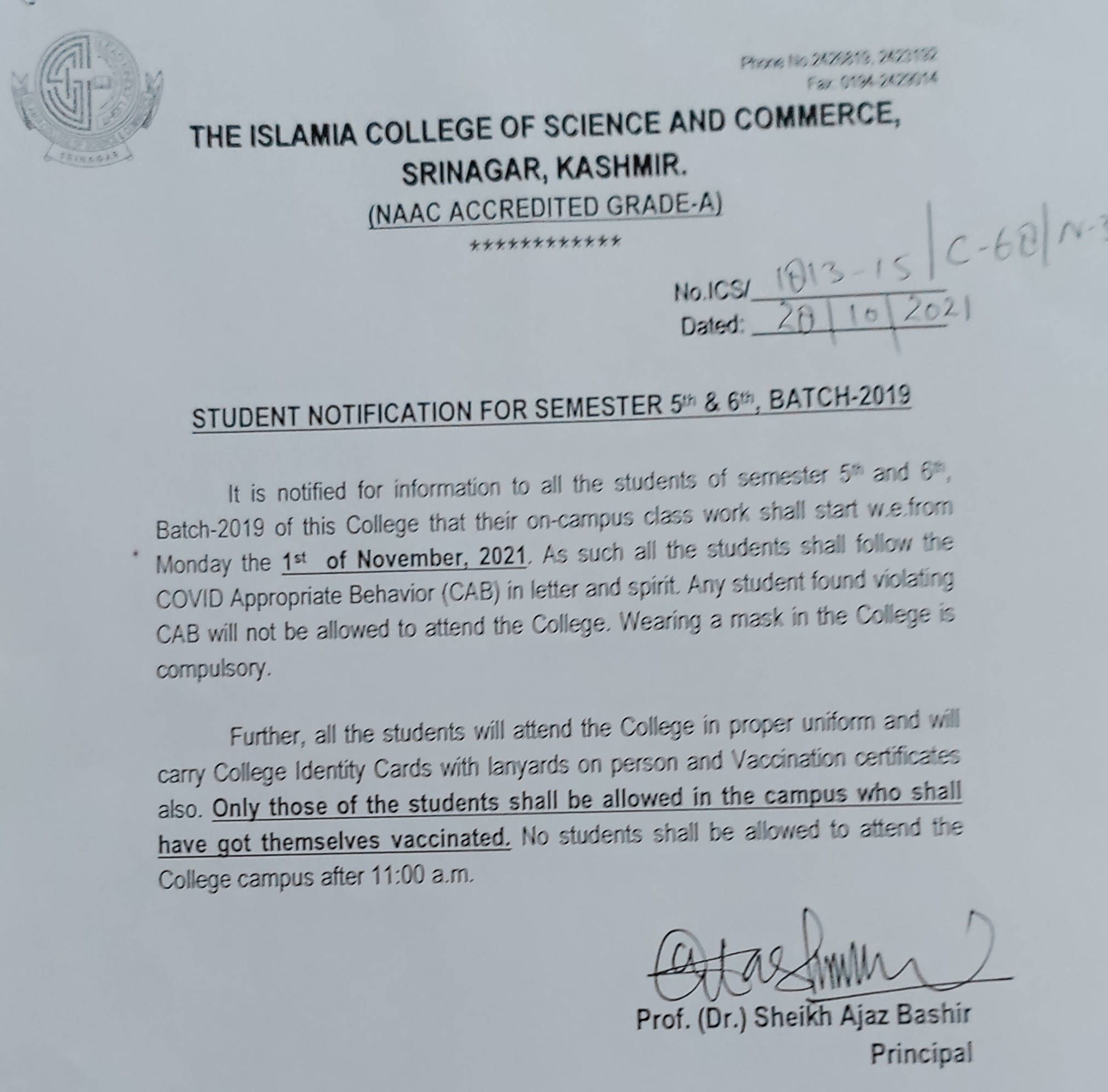 The post College – ICSC NOTIFICATION FOR OFFLINE CLASSES first appeared on JKUpdates - Jammu Kashmir Alerts & Updates.